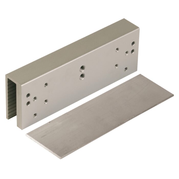 300/600UZAP to uniwersalny zestaw montażowy do zwory elektromagnetycznej, idealny do instalacji zwory na drzwiach szklanych o grubości 10-13 mm, bez konieczności wiercenia otworów w szkle.